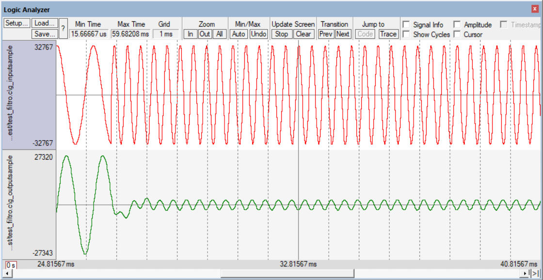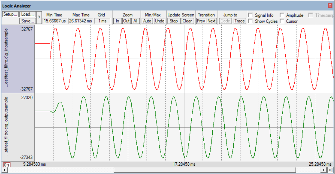 Test4: filtrado de una señal senoidal de frecuencia 3319 Hz.